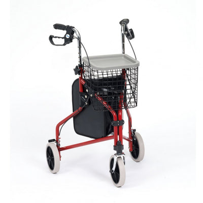 Folding Steel Three Wheel/Tri-Walker with Handy Bag, Basket & Tray