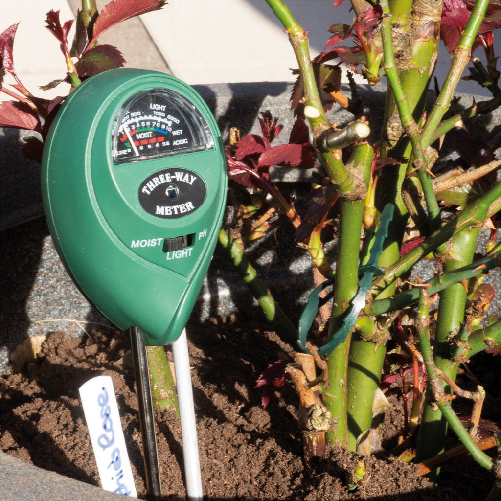 This soil tester has a moisture meter, PH acidity tester, and light sensor all in one.