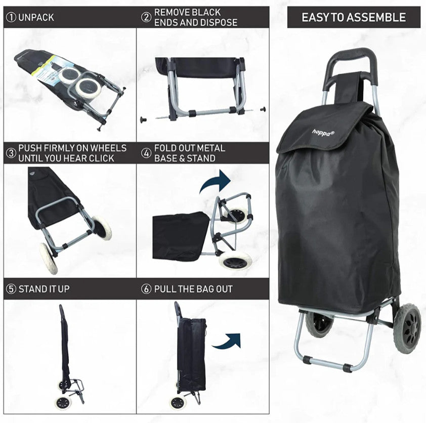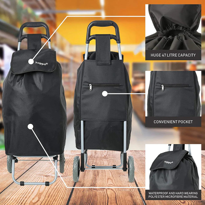 This Hoppa lightweight shopping trolley is one of the most practical shopping trolleys we have come across. It's a great way to be able to carry up to 47 litres of shopping without having to carry heavy bags - simply pull or push the shopping trolley and let it do all the hard work!