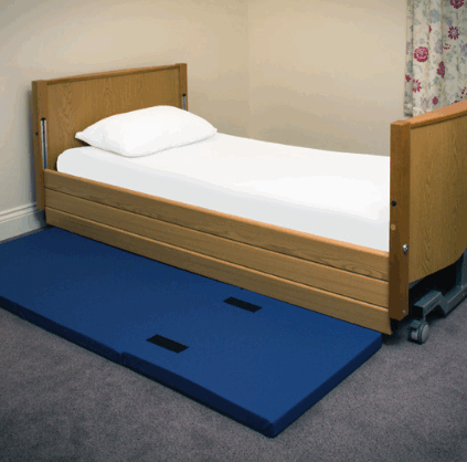 As a mobility aid, the Foldable Fall-Out Mat has been designed primarily for use with beds that are open, or have no side railings.