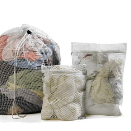 The Mesh Laundry bags are available in a range of sizes and come with either a zip-lock or drawstring closure to ensure garments stay within the bag throughout the wash cycle.