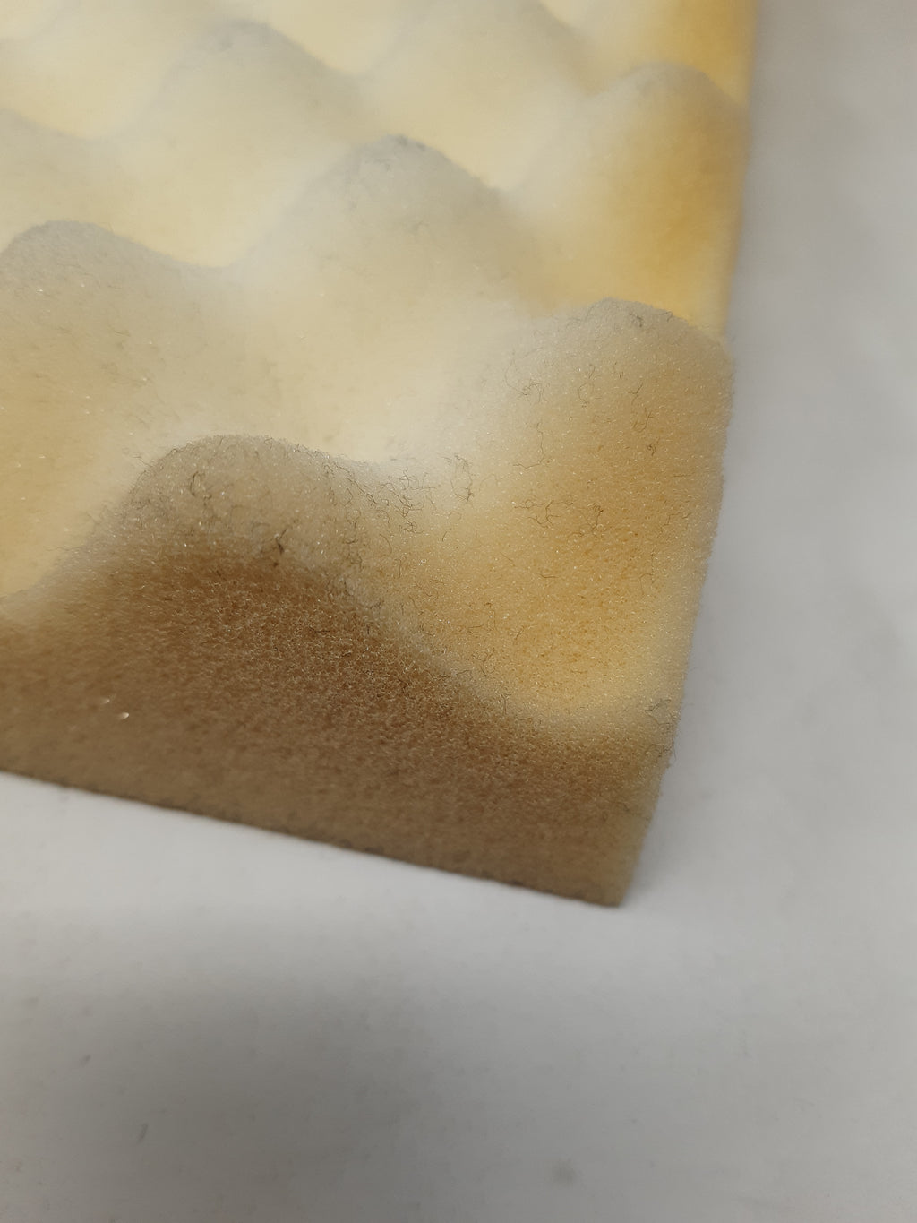 The cushion is in full working order and is medium to firm density. The cushion has yellow edges due to the cold cast polyurethene foam it is made from and is part of the cutting process. Please see photos.