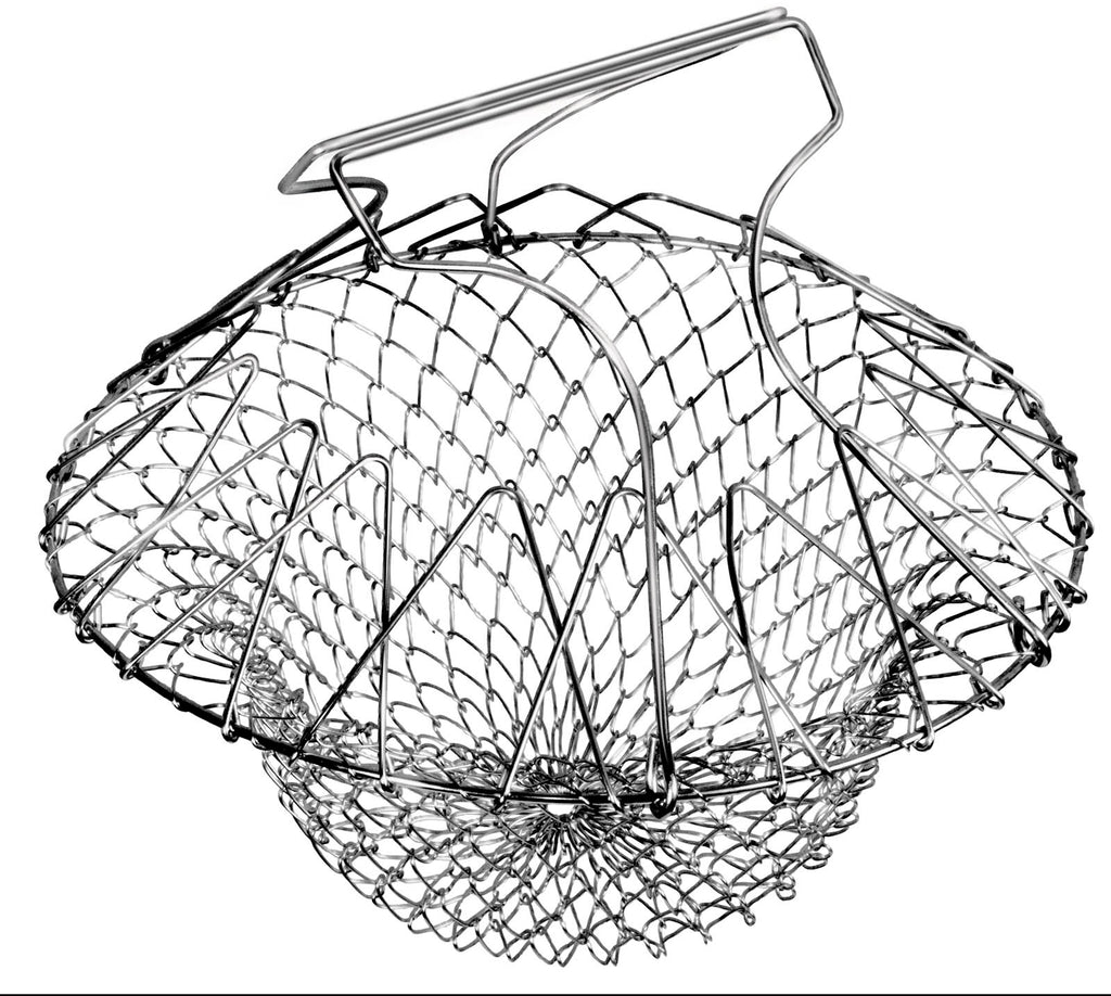 This cooking basket is universally designed to fit most pans and it can be folded flat for easy storage without taking up too much room in your kitchen.