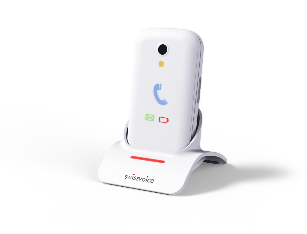 The Swissvoice S28 is an easy-to-use clamshell mobile phone with external information icons. It is equipped with a large 2.8 inch colour display and large external indicator lights (showing battery status, missed calls and incoming messages) As a mobility aid the Swissvoice S28 is easy and straightforward to use.